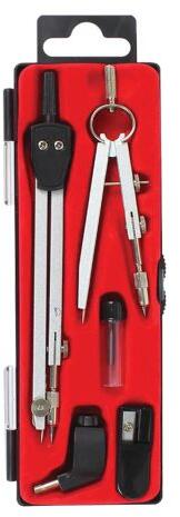 Fém testű iránytűkészlet a precíz rajzoláshoz praktikus tokban. 2 iránytű univerzális adapter tartalék szilárd anyagok