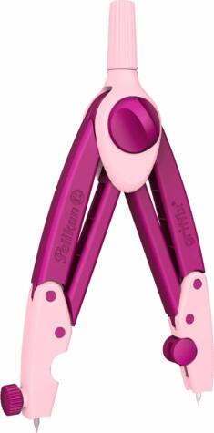 Rózsaszín-lila színű körző hegy- és vezetékvédelemmel, ergonomikus markolattal a könnyű és precíz munkavégzés érdekében,  a körző 3 tartalék vezetéket tartalmaz.